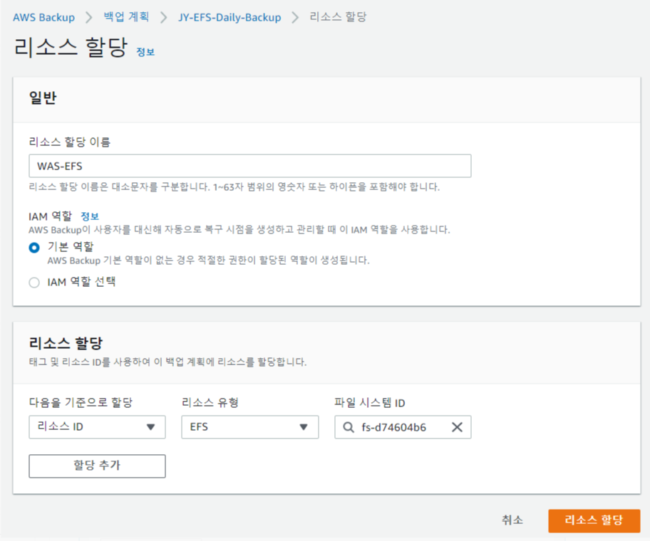 - 예) EFSBackup, EBSBackup, RDSBackup 등