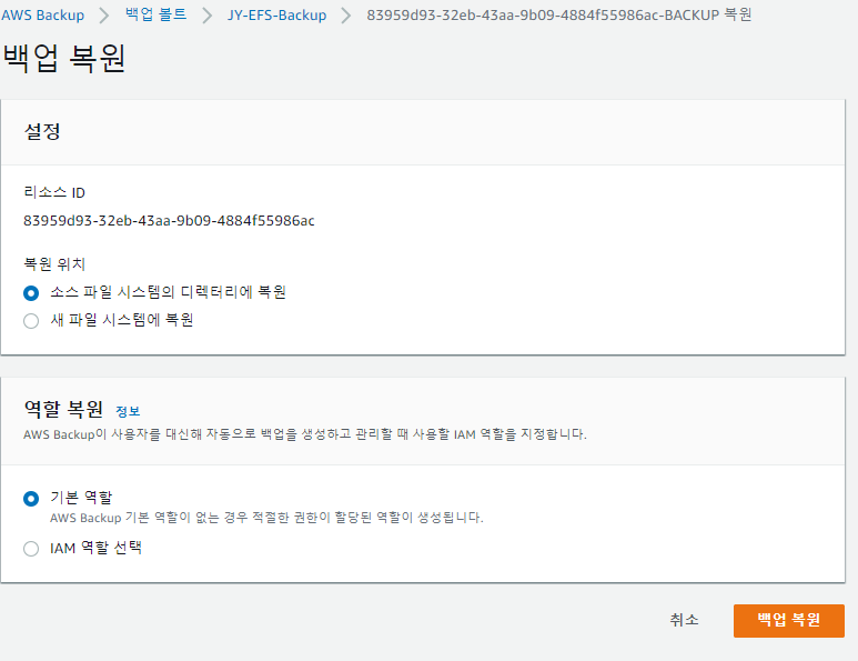 오늘은 간단하게 AWS Backup 서비스로 AWS EFS를 백업/복구를 해봤습니다.