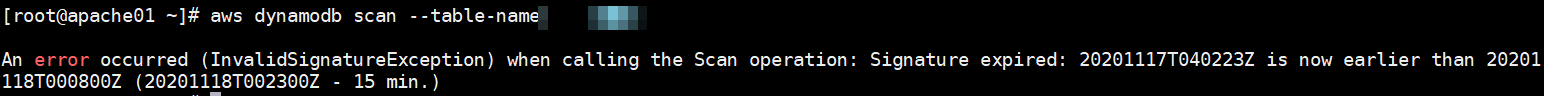 An error occurred (InvalidSignatureException) when calling the ListTables operation: Signature expired ......